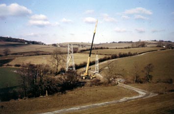 Some fields have suffered more disruption than others. All might look peaceful on the surface now, but for more than 100 years Strickley has suffered in the name of progress. The main Haweswater to Manchester water pipe was laid in the Nineteenth Century (see the section on Water on the History page). Other services go through Strickley, including a gas pipe, overhead pylons and a fibre-optic cable. The photographs below show some of the work in progress (and the disruption). All the services seem to go through the Crow, and had great difficulty (especially the gaspipe) in avoiding damaging the water mains.